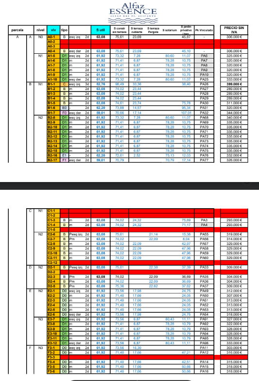 De vermelde prijzen zijn exclusief 10% IVA (btw). Houd daarnaast ook rekening met het zegelrecht (1,2 tot 1,5%) die wordt geheven bij een nieuwbouwwoning. Vergeet ook niet de kosten voor een advocaat, notaris en het overzetten van gas, elektriciteit en water. En, indien nodig, het regelen van NIE-nummers en het openen van een bankrekening. Voor het gemak kun je ervan uitgaan dat de bijkomende kosten ongeveer 14% van de aankoopprijs bedragen.