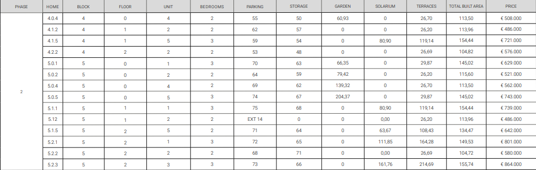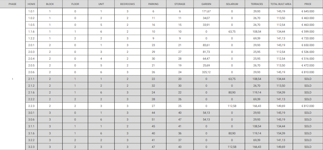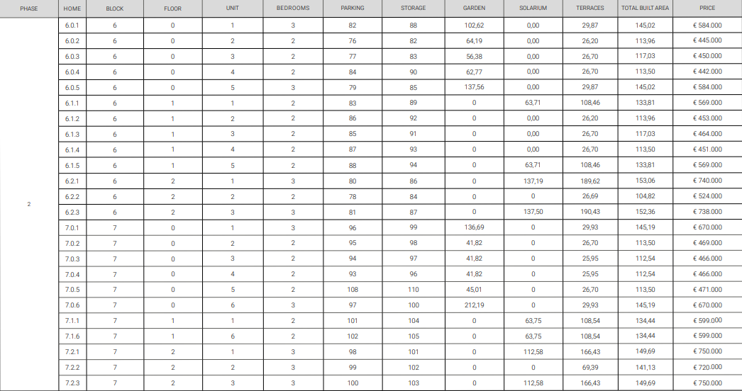De vermelde prijzen zijn exclusief 10% IVA (btw). Houd daarnaast ook rekening met het zegelrecht (1,2 tot 1,5%) die wordt geheven bij een nieuwbouwwoning. Vergeet ook niet de kosten voor een advocaat, notaris en het overzetten van gas, elektriciteit en water. En, indien nodig, het regelen van NIE-nummers en het openen van een bankrekening. Voor het gemak kun je ervan uitgaan dat de bijkomende kosten ongeveer 14% van de aankoopprijs bedragen.