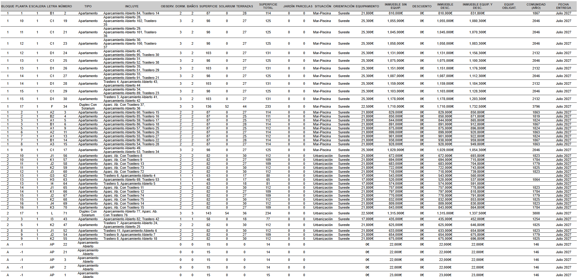 De vermelde prijzen zijn exclusief 10% IVA (btw). Houd daarnaast ook rekening met het zegelrecht (1,2 tot 1,5%) die wordt geheven bij een nieuwbouwwoning. Vergeet ook niet de kosten voor een advocaat, notaris en het overzetten van gas, elektriciteit en water. En, indien nodig, het regelen van NIE-nummers en het openen van een bankrekening. Voor het gemak kun je ervan uitgaan dat de bijkomende kosten ongeveer 14% van de aankoopprijs bedragen.