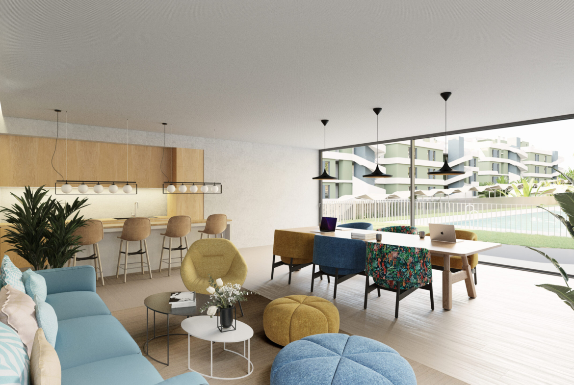 Alle appartementen op de begane grond hebben grote terrassen en privétuinen. Vanaf de tweede verdieping bieden we ook dúplex penthouses met ruime solariums en tot slot een aantal geweldige penthouses met terrassen aan beide zijden om op elk moment van de dag te genieten van zonnige of schaduwrijke plekken! Het complex wordt volledig omheind en alle appartementen en penthouses hebben een eigen parkeerplaats.