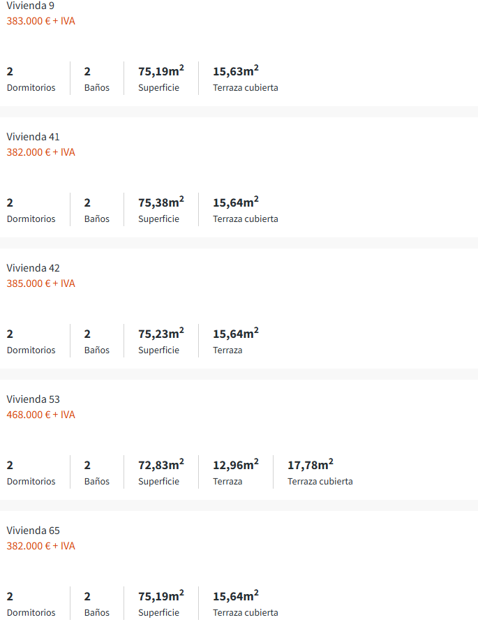 De vermelde prijzen zijn exclusief 10% IVA (btw). Houd daarnaast ook rekening met het zegelrecht (1,2 tot 1,5%) die wordt geheven bij een nieuwbouwwoning. Vergeet ook niet de kosten voor een advocaat, notaris en het overzetten van gas, elektriciteit en water. En, indien nodig, het regelen van NIE-nummers en het openen van een bankrekening. Voor het gemak kun je ervan uitgaan dat de bijkomende kosten ongeveer 14% van de aankoopprijs bedragen.