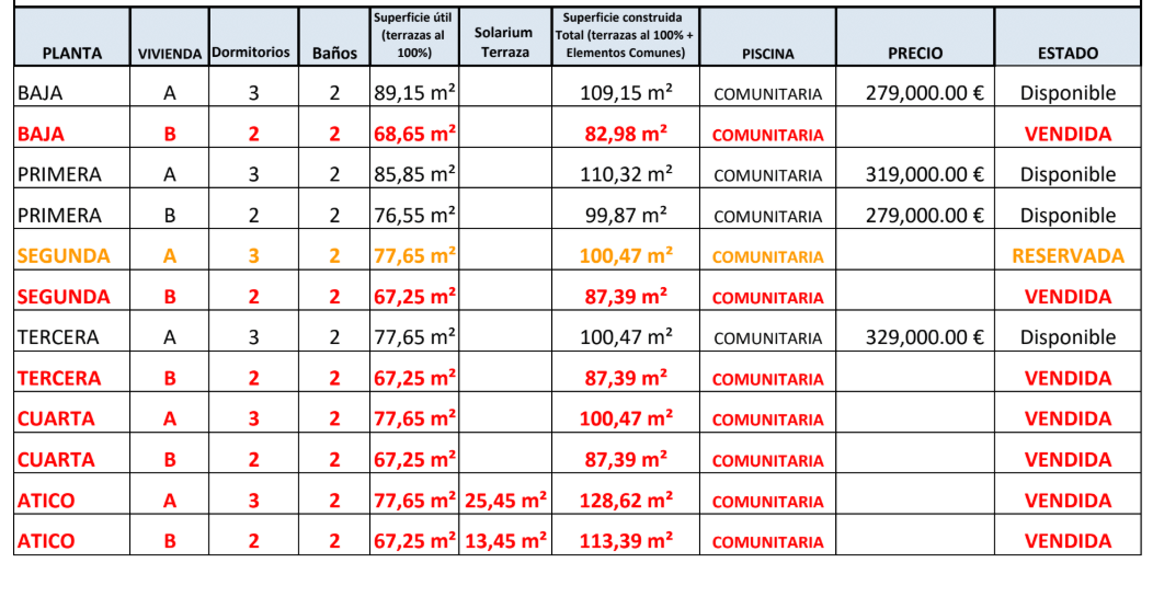 De vermelde prijzen zijn exclusief 10% IVA (btw). Houd daarnaast ook rekening met het zegelrecht (1,2 tot 1,5%) die wordt geheven bij een nieuwbouwwoning. Vergeet ook niet de kosten voor een advocaat, notaris en het overzetten van gas, elektriciteit en water. En, indien nodig, het regelen van NIE-nummers en het openen van een bankrekening. Voor het gemak kun je ervan uitgaan dat de bijkomende kosten ongeveer 14% van de aankoopprijs bedragen.