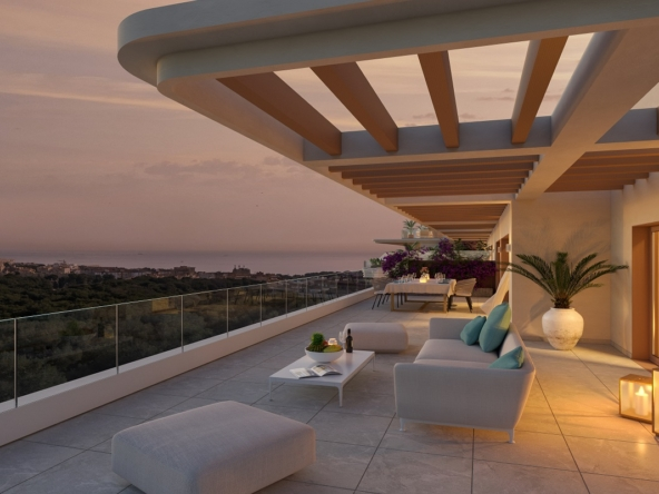 Welkom bij Kosmos, een uniek woonproject in het hart van Torremolinos waar architectuur, natuur en comfort samenkomen. Dit nieuwe complex, ontworpen door HCP Arquitectos, speelt volledig in op het mediterrane klimaat en de prachtige natuurlijke omgeving van Málaga. De verhoogde ligging en oriëntatie op het dennenbos zorgen voor veel natuurlijk licht, panoramische uitzichten en een vloeiende overgang tussen binnen en buiten. Ruime terrassen functioneren als brise soleil én leefruimte, waardoor je het hele jaar door van het buitenleven kunt genieten.