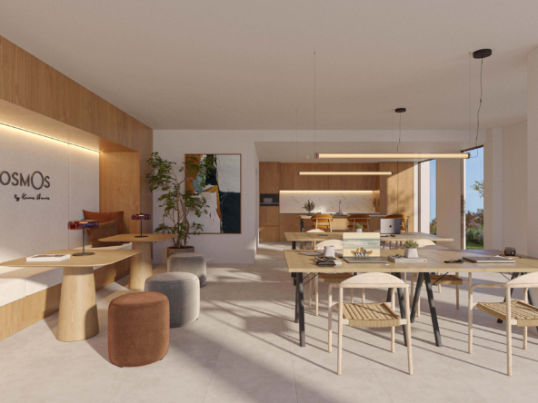 Kosmos is ontworpen met oog voor harmonie met de omgeving. Grote ramen laten het daglicht overvloedig binnen in een open leefruimte waar de woonkamer, keuken en eetkamer samenkomen en direct aansluiten op het ruime terras een natuurlijke verlenging van het interieur. Dankzij een slimme indeling zijn de slaapkamers gegroepeerd in een apart slaapgedeelte, waardoor privacy gewaarborgd is zonder de leefruimtes te onderbreken.