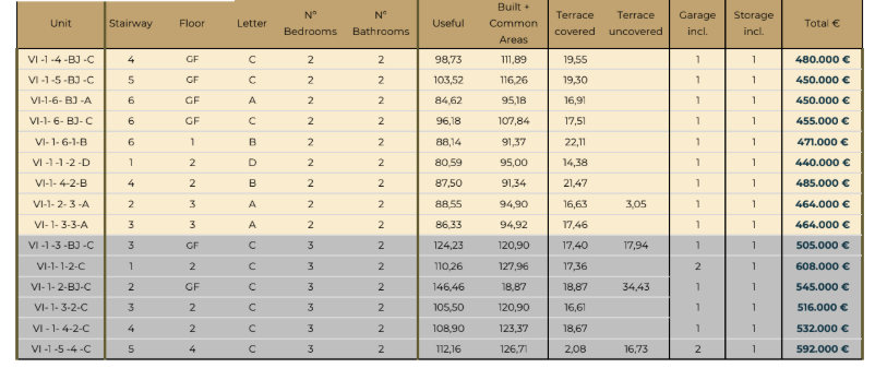 De vermelde prijzen zijn exclusief 10% IVA (btw). Houd daarnaast ook rekening met het zegelrecht (1,2 tot 1,5%) die wordt geheven bij een nieuwbouwwoning. Vergeet ook niet de kosten voor een advocaat, notaris en het overzetten van gas, elektriciteit en water. En, indien nodig, het regelen van NIE-nummers en het openen van een bankrekening. Voor het gemak kun je ervan uitgaan dat de bijkomende kosten ongeveer 14% van de aankoopprijs bedragen.