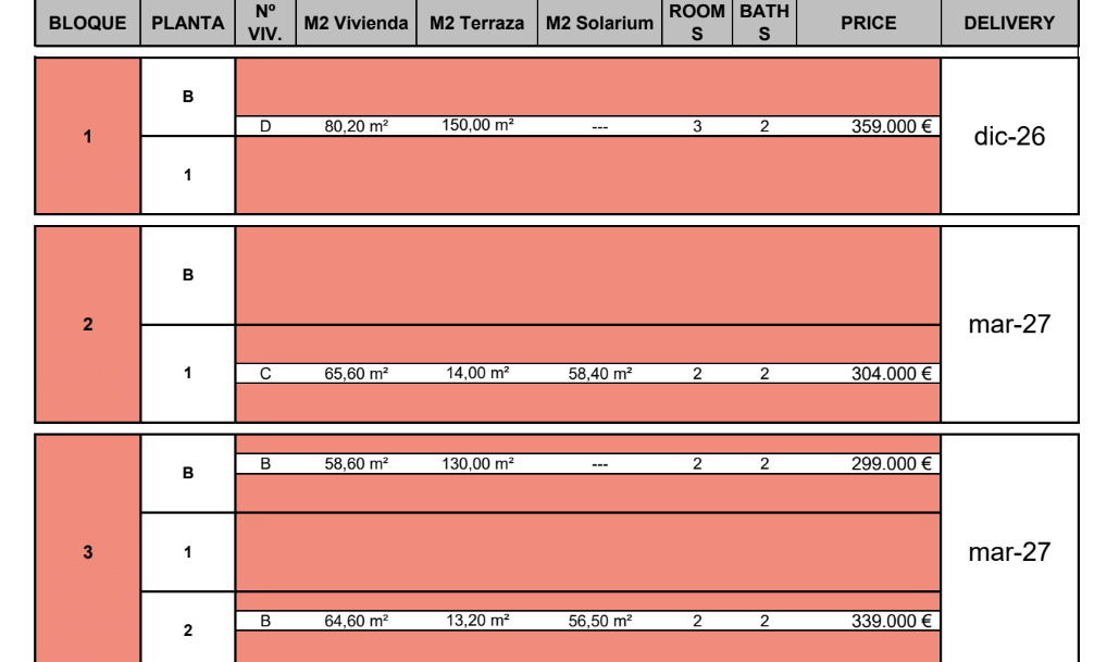 De vermelde prijzen zijn exclusief 10% IVA (btw). Houd daarnaast ook rekening met het zegelrecht (1,2 tot 1,5%) die wordt geheven bij een nieuwbouwwoning. Vergeet ook niet de kosten voor een advocaat, notaris en het overzetten van gas, elektriciteit en water. En, indien nodig, het regelen van NIE-nummers en het openen van een bankrekening. Voor het gemak kun je ervan uitgaan dat de bijkomende kosten ongeveer 14% van de aankoopprijs bedragen.