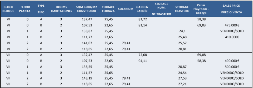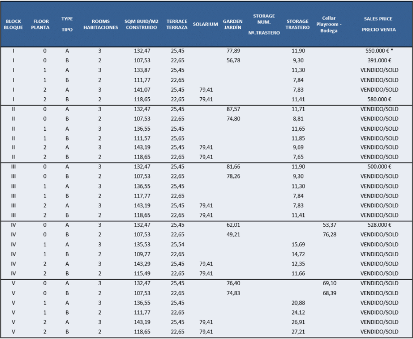 De vermelde prijzen zijn exclusief 10% IVA (btw). Houd daarnaast ook rekening met het zegelrecht (1,2 tot 1,5%) die wordt geheven bij een nieuwbouwwoning. Vergeet ook niet de kosten voor een advocaat, notaris en het overzetten van gas, elektriciteit en water. En, indien nodig, het regelen van NIE-nummers en het openen van een bankrekening. Voor het gemak kun je ervan uitgaan dat de bijkomende kosten ongeveer 14% van de aankoopprijs bedragen.