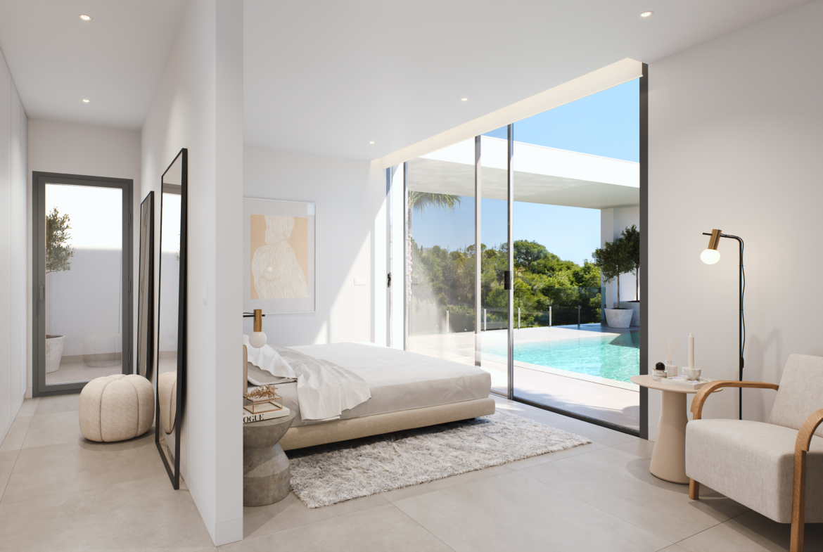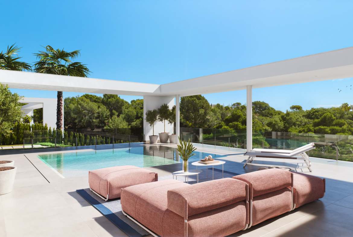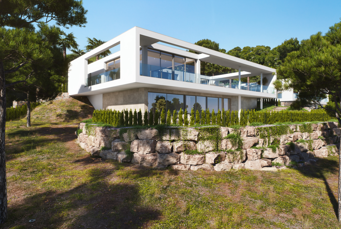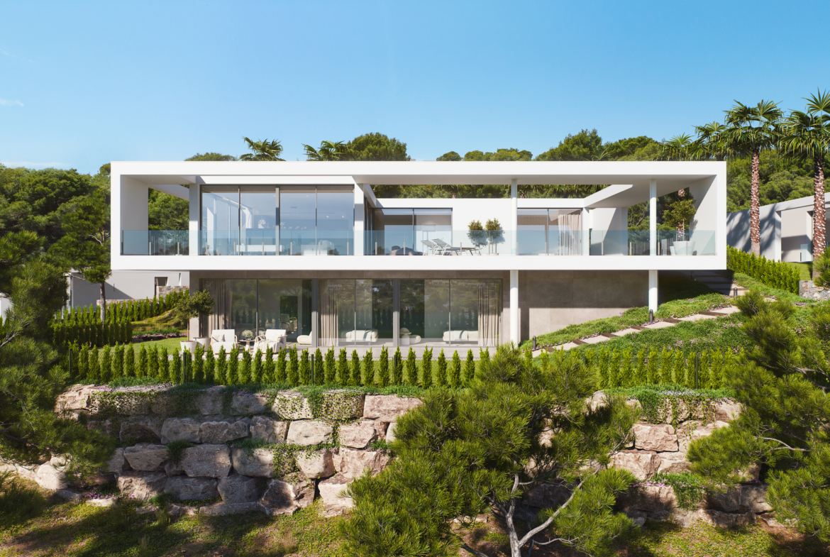Het ontwerp van Villa Pelicano is een prachtig voorbeeld van hedendaagse architectuur, met strakke lijnen en een open indeling die de ruimte maximaliseert. Grote ramen laten het interieur op natuurlijke wijze opgaan in de omringende natuur, terwijl zorgvuldig aangelegde terrassen zorgen voor een perfecte overgang tussen binnen en buiten. De villa is volledig geïntegreerd in het omringende mediterrane bos, wat het gevoel van rust en privacy versterkt.