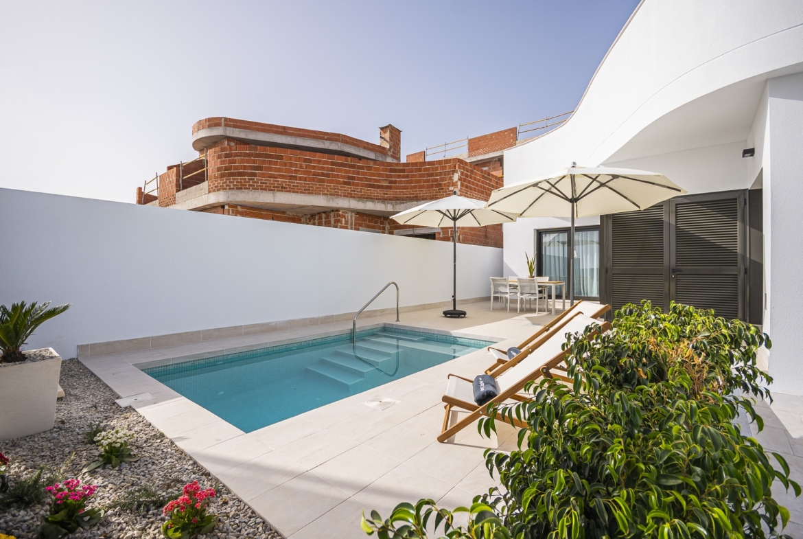 Elke villa heeft een privéterras, perfect om te ontspannen, te entertainen, te zonnebaden of te genieten van een duik in het privézwembad van 10 m². Voor wie kiest voor een duplex zijn er twee opties: de ene biedt prachtig uitzicht op de lagune en de andere is gepositioneerd om de middagzon te vangen. Of je nu kiest voor een woning op de begane grond of op de bovenste verdieping, elke woning is ontworpen om het natuurlijke licht te maximaliseren, met een open woonruimte die naadloos aansluit op de keuken.