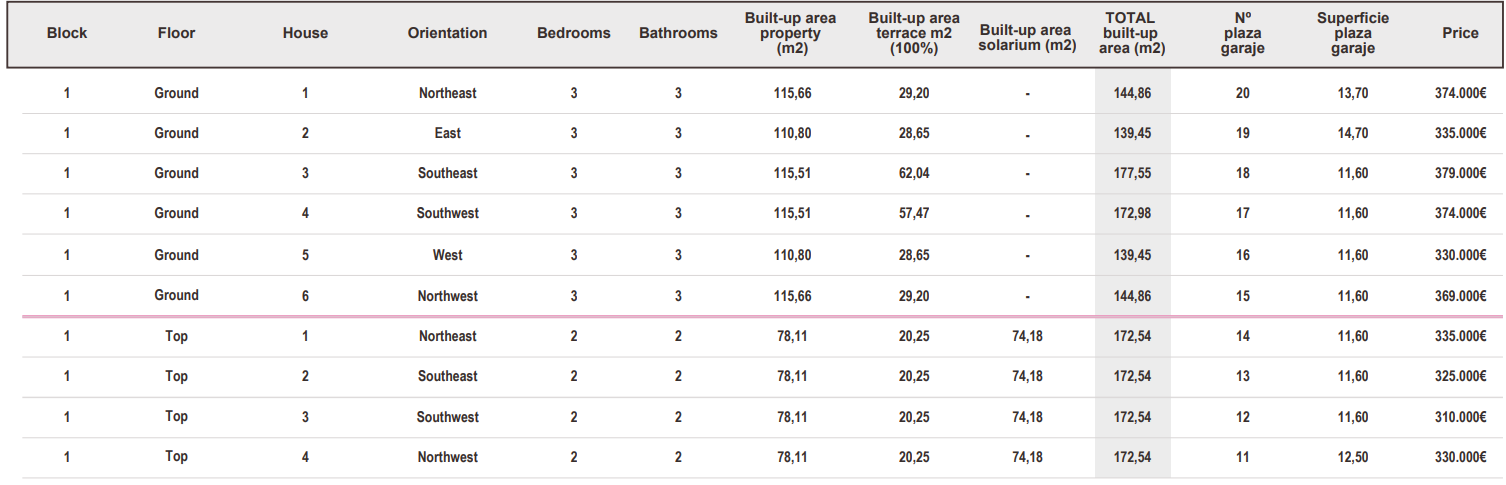 De vermelde prijzen zijn exclusief 10% IVA (btw). Houd daarnaast ook rekening met het zegelrecht (1,2 tot 1,5%) die wordt geheven bij een nieuwbouwwoning. Vergeet ook niet de kosten voor een advocaat, notaris en het overzetten van gas, elektriciteit en water. En, indien nodig, het regelen van NIE-nummers en het openen van een bankrekening. Voor het gemak kun je ervan uitgaan dat de bijkomende kosten ongeveer 14% van de aankoopprijs bedragen.