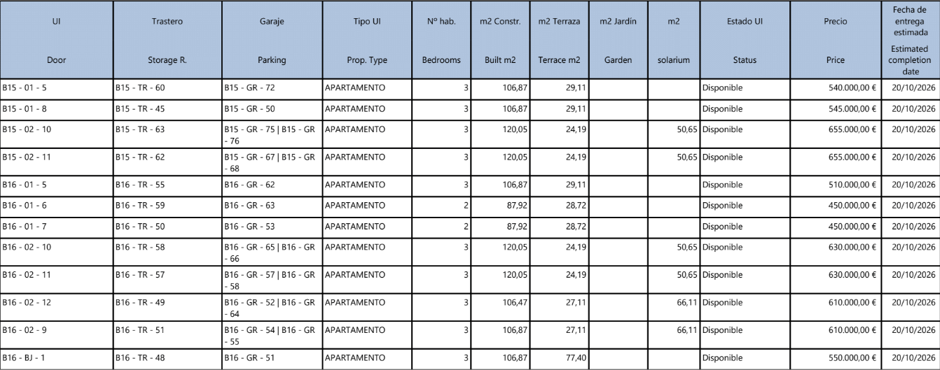 De vermelde prijzen zijn exclusief 10% IVA (btw). Houd daarnaast ook rekening met het zegelrecht (1,2 tot 1,5%) die wordt geheven bij een nieuwbouwwoning. Vergeet ook niet de kosten voor een advocaat, notaris en het overzetten van gas, elektriciteit en water. En, indien nodig, het regelen van NIE-nummers en het openen van een bankrekening. Voor het gemak kun je ervan uitgaan dat de bijkomende kosten ongeveer 14% van de aankoopprijs bedragen.