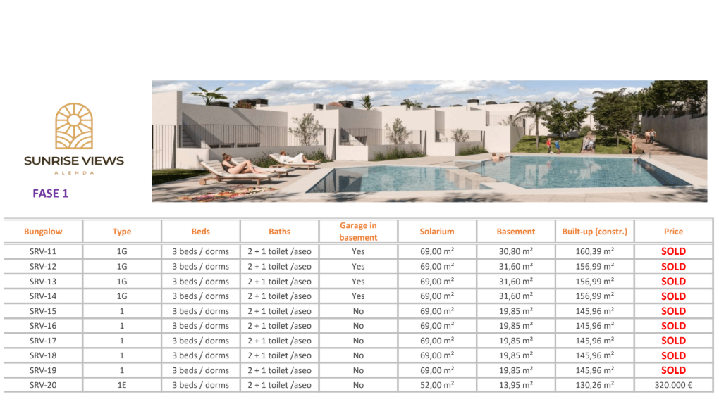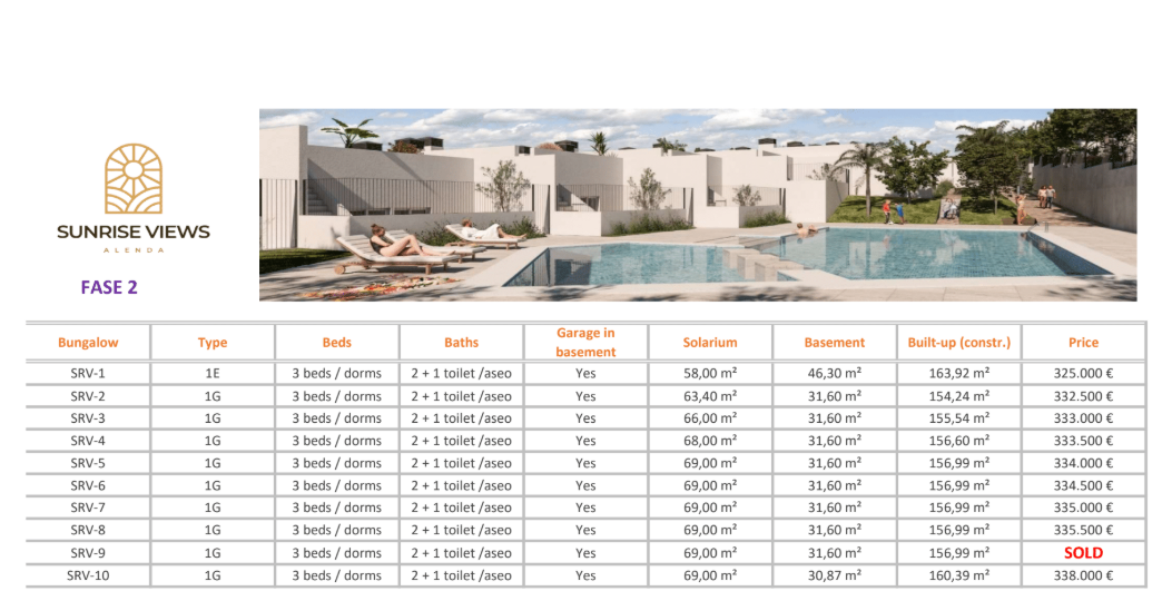 Sunrise views is een nieuwbouwproject bestaande uit 54 bungalows met zicht op de Golfbaan van Alenda Golf in Monforte de Cid.