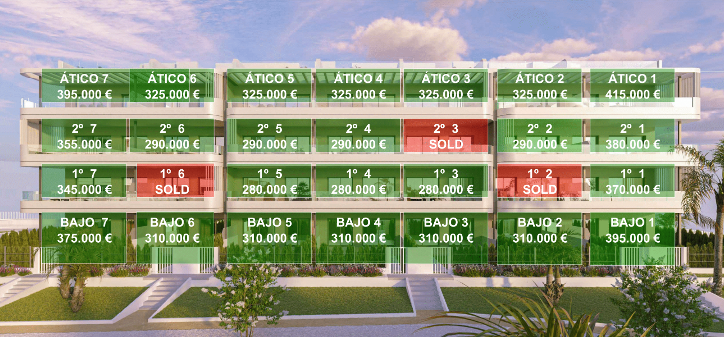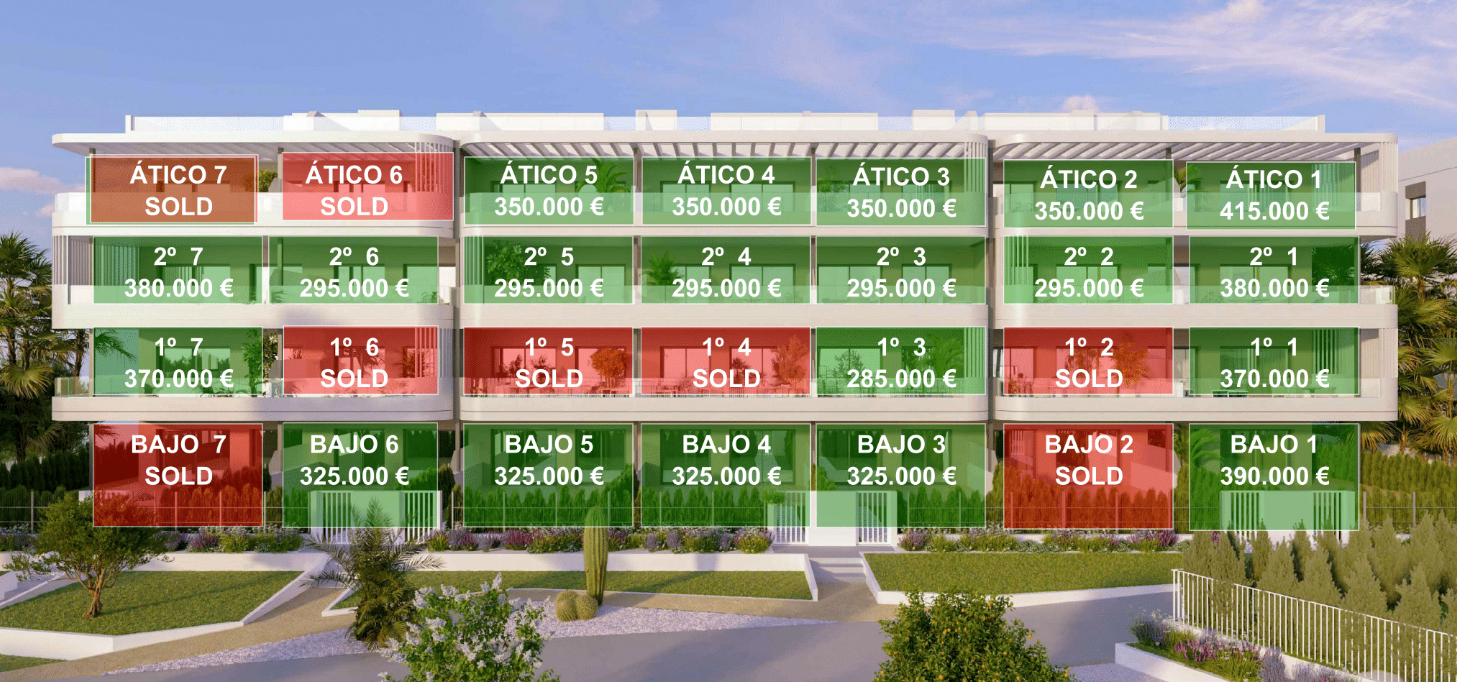 De vermelde prijzen zijn exclusief 10% IVA (btw). Houd daarnaast ook rekening met het zegelrecht (1,2 tot 1,5%) die wordt geheven bij een nieuwbouwwoning. Vergeet ook niet de kosten voor een advocaat, notaris en het overzetten van gas, elektriciteit en water. En, indien nodig, het regelen van NIE-nummers en het openen van een bankrekening. Voor het gemak kun je ervan uitgaan dat de bijkomende kosten ongeveer 14% van de aankoopprijs bedragen.