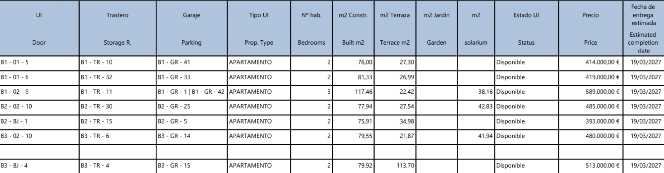 De vermelde prijzen zijn exclusief 10% IVA (btw). Houd daarnaast ook rekening met het zegelrecht (1,2 tot 1,5%) die wordt geheven bij een nieuwbouwwoning. Vergeet ook niet de kosten voor een advocaat, notaris en het overzetten van gas, elektriciteit en water. En, indien nodig, het regelen van NIE-nummers en het openen van een bankrekening. Voor het gemak kun je ervan uitgaan dat de bijkomende kosten ongeveer 14% van de aankoopprijs bedragen.