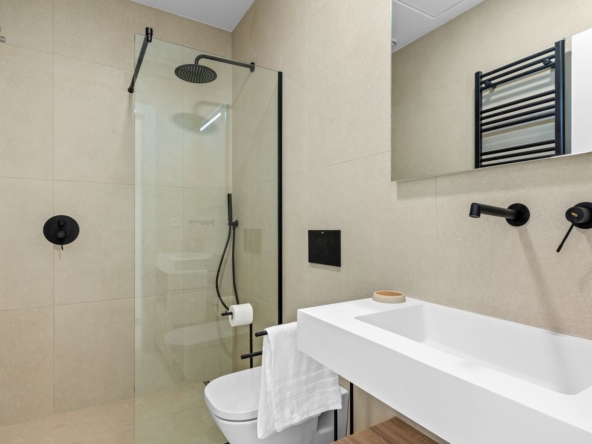 De woningen worden bovendien opgeleverd met diverse extra’s inbegrepen, zoals volledige airconditioninginstallatie, keukenapparatuur, elektrische rolluiken in de slaapkamers en afgewerkte badkamers, waardoor ze direct instapklaar zijn.