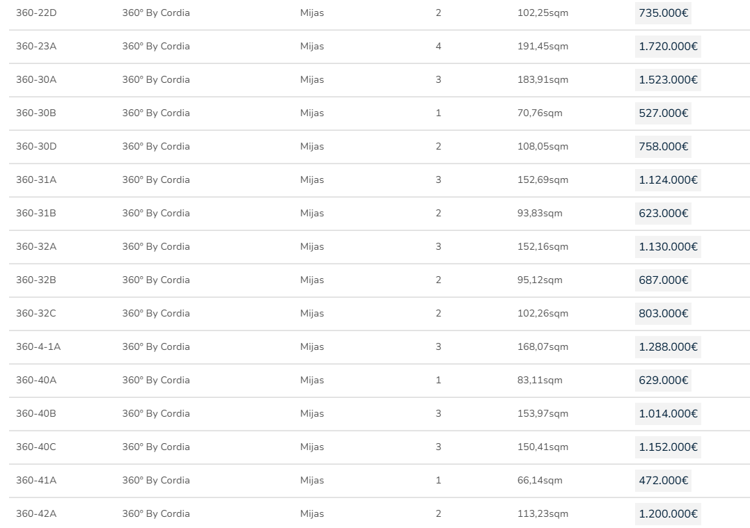 The prices listed are excluding 10% IVA (VAT). You should also take into account the stamp duty (1,2 to 1,5%) that is charged on a new property. Also keep in mind the costs of a lawyer, notary and the transfer of gas, electricity and water. And, if necessary, arranging NIE numbers and opening a bank account. For convenience, you can calculate that the cost on top of the purchase price is around 14%.