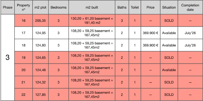 The homes are further equipped with fitted wardrobes, electric shutters, a fully equipped kitchen with all necessary appliances, an electric gate and luxury bathrooms with underfloor heating.