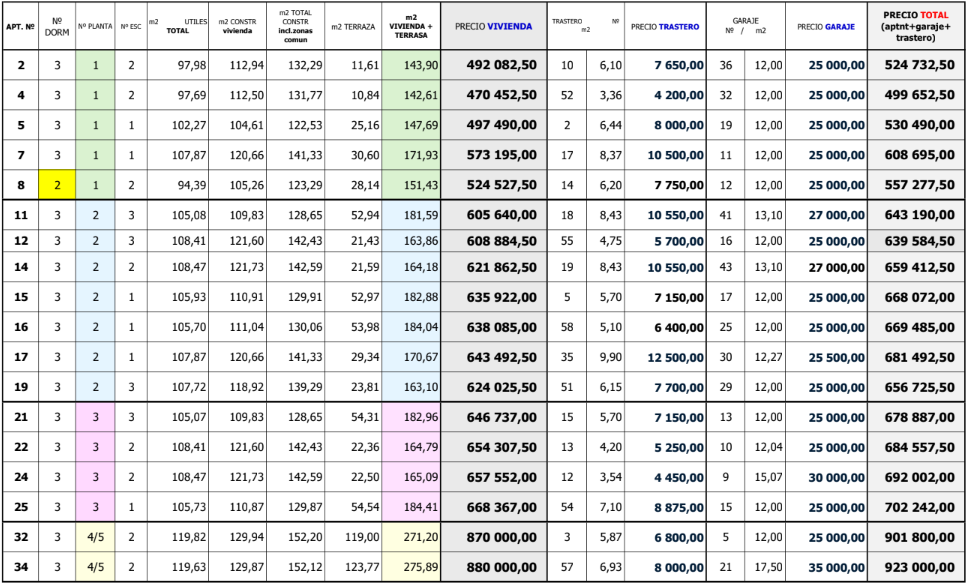 The prices listed are excluding 10% IVA (VAT). You should also take into account the stamp duty (1,2 to 1,5%) that is charged on a new property. Also keep in mind the costs of a lawyer, notary and the transfer of gas, electricity and water. And, if necessary, arranging NIE numbers and opening a bank account. For convenience, you can calculate that the cost on top of the purchase price is around 14%.