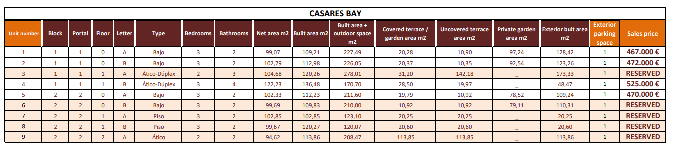To complete this idyllic environment, Casares Bay offers a range of exclusive communal facilities. The complex features a solarium with a swimming pool, including Balinese beds, and beautifully landscaped gardens and green areas that promote peace and relaxation. The entire development is fully enclosed, ensuring the safety and peace of mind of residents.