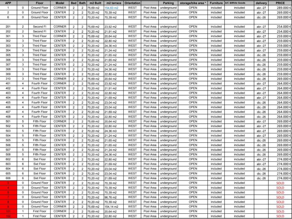The prices listed are excluding 10% IVA (VAT). You should also take into account the stamp duty (1,2 to 1,5%) that is charged on a new property. Also keep in mind the costs of a lawyer, notary and the transfer of gas, electricity and water. And, if necessary, arranging NIE numbers and opening a bank account. For convenience, you can calculate that the cost on top of the purchase price is around 14%.