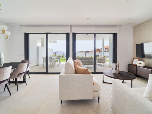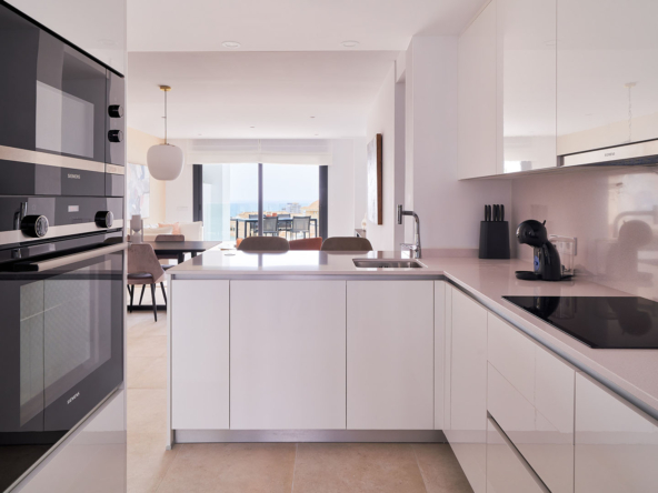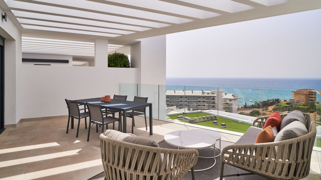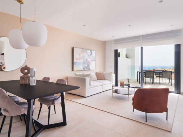 Higuerรณn Bay Residences consists of 60 unique homes distributed across three modern buildings. The spacious communal areas, covering more than 8,000 square meters of landscaped gardens, walking paths, and leisure zones, form the heart of the project. Residents can enjoy breathtaking sea views from the panoramic plaza, relax in the heated pool, childrenโs pool, or jacuzzi, and make use of a fully equipped gym, coworking room, and communal WiFi. The entire complex has been designed without architectural barriers, ensuring full accessibility for everyone.