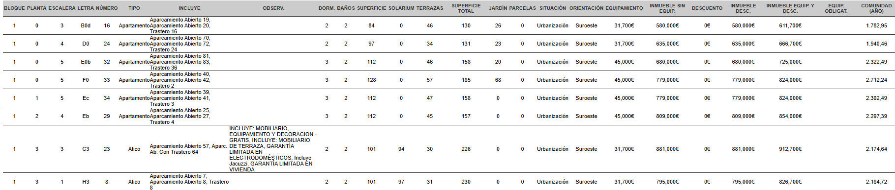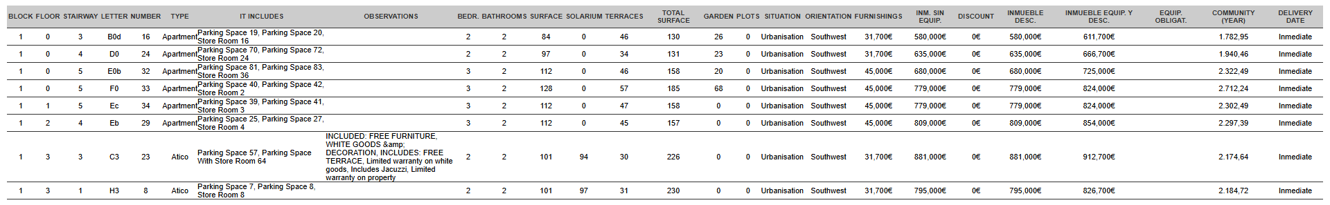 The prices listed are excluding 10% IVA (VAT). You should also take into account the stamp duty (1,2 to 1,5%) that is charged on a new property. Also keep in mind the costs of a lawyer, notary and the transfer of gas, electricity and water. And, if necessary, arranging NIE numbers and opening a bank account. For convenience, you can calculate that the cost on top of the purchase price is around 14%.