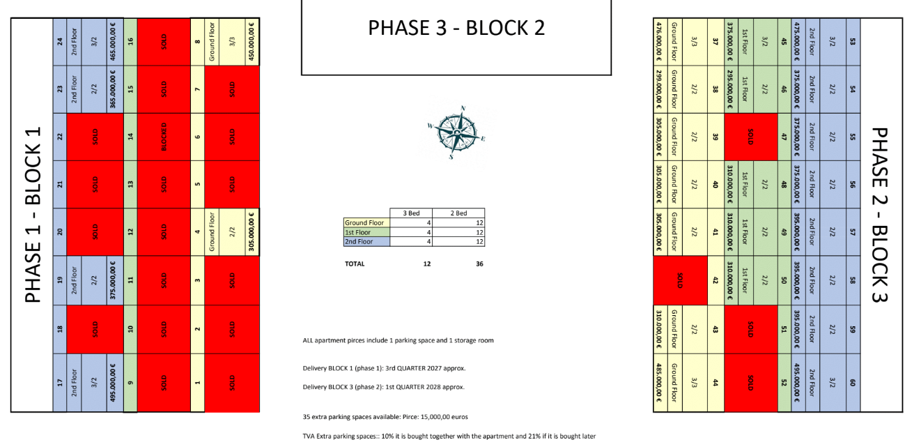 The prices listed are excluding 10% IVA (VAT). You should also take into account the stamp duty (1,2 to 1,5%) that is charged on a new property. Also keep in mind the costs of a lawyer, notary and the transfer of gas, electricity and water. And, if necessary, arranging NIE numbers and opening a bank account. For convenience, you can calculate that the cost on top of the purchase price is around 14%.