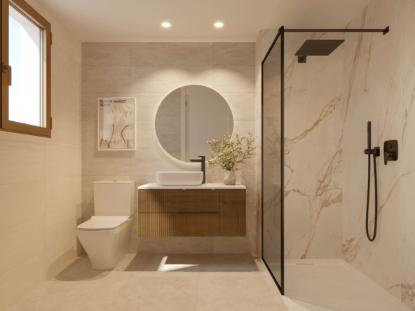 Various home types are available with 2 or 3 bedrooms, always including a generous terrace. The living concept focuses on comfort and well-being, with optimal orientation, high-quality materials, and an integrated smart home system for efficient and intelligent living. The communal areas are much more than practical amenities they are designed as places where you can enjoy the Mediterranean lifestyle every day. The design emphasizes sociability and connection, with a distinctive and welcoming character that immediately feels like home.