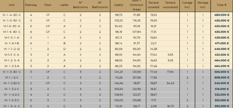 The prices listed are excluding 10% IVA (VAT). You should also take into account the stamp duty (1,2 to 1,5%) that is charged on a new property. Also keep in mind the costs of a lawyer, notary and the transfer of gas, electricity and water. And, if necessary, arranging NIE numbers and opening a bank account. For convenience, you can calculate that the cost on top of the purchase price is around 14%.