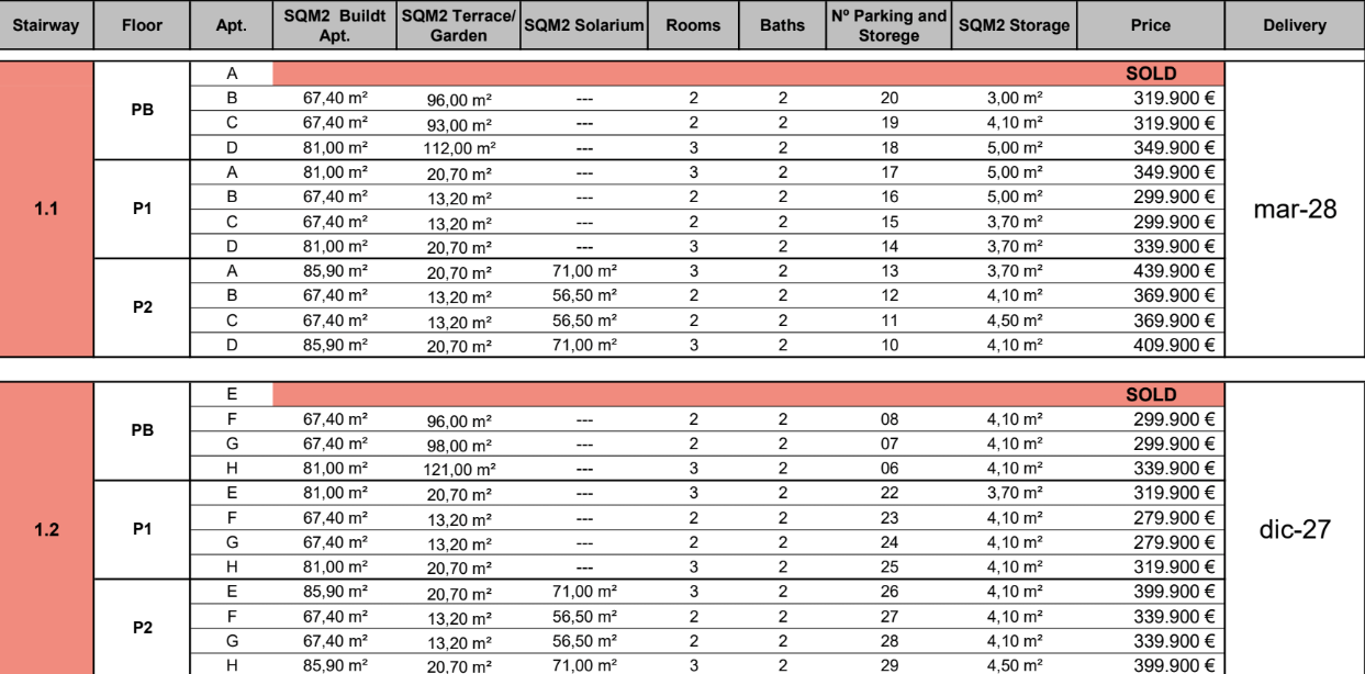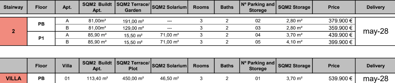 The prices listed are excluding 10% IVA (VAT). You should also take into account the stamp duty (1,2 to 1,5%) that is charged on a new property. Also keep in mind the costs of a lawyer, notary and the transfer of gas, electricity and water. And, if necessary, arranging NIE numbers and opening a bank account. For convenience, you can calculate that the cost on top of the purchase price is around 14%.