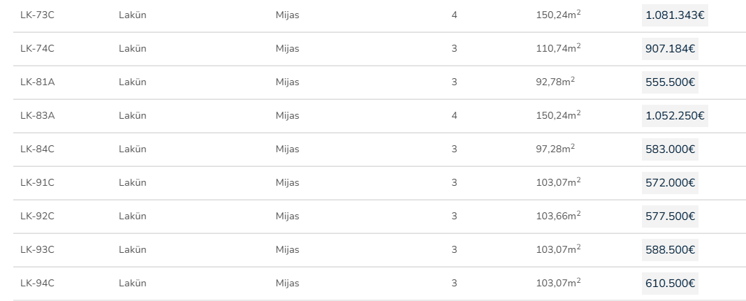 The prices listed are excluding 10% IVA (VAT). You should also take into account the stamp duty (1,2 to 1,5%) that is charged on a new property. Also keep in mind the costs of a lawyer, notary and the transfer of gas, electricity and water. And, if necessary, arranging NIE numbers and opening a bank account. For convenience, you can calculate that the cost on top of the purchase price is around 14%.