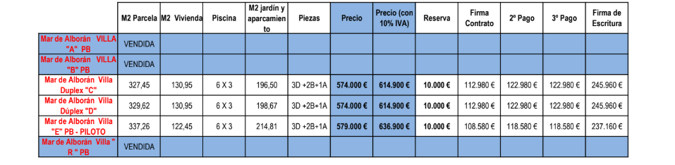 The prices listed are excluding 10% IVA (VAT). You should also take into account the stamp duty (1,2 to 1,5%) that is charged on a new property. Also keep in mind the costs of a lawyer, notary and the transfer of gas, electricity and water. And, if necessary, arranging NIE numbers and opening a bank account. For convenience, you can calculate that the cost on top of the purchase price is around 14%.