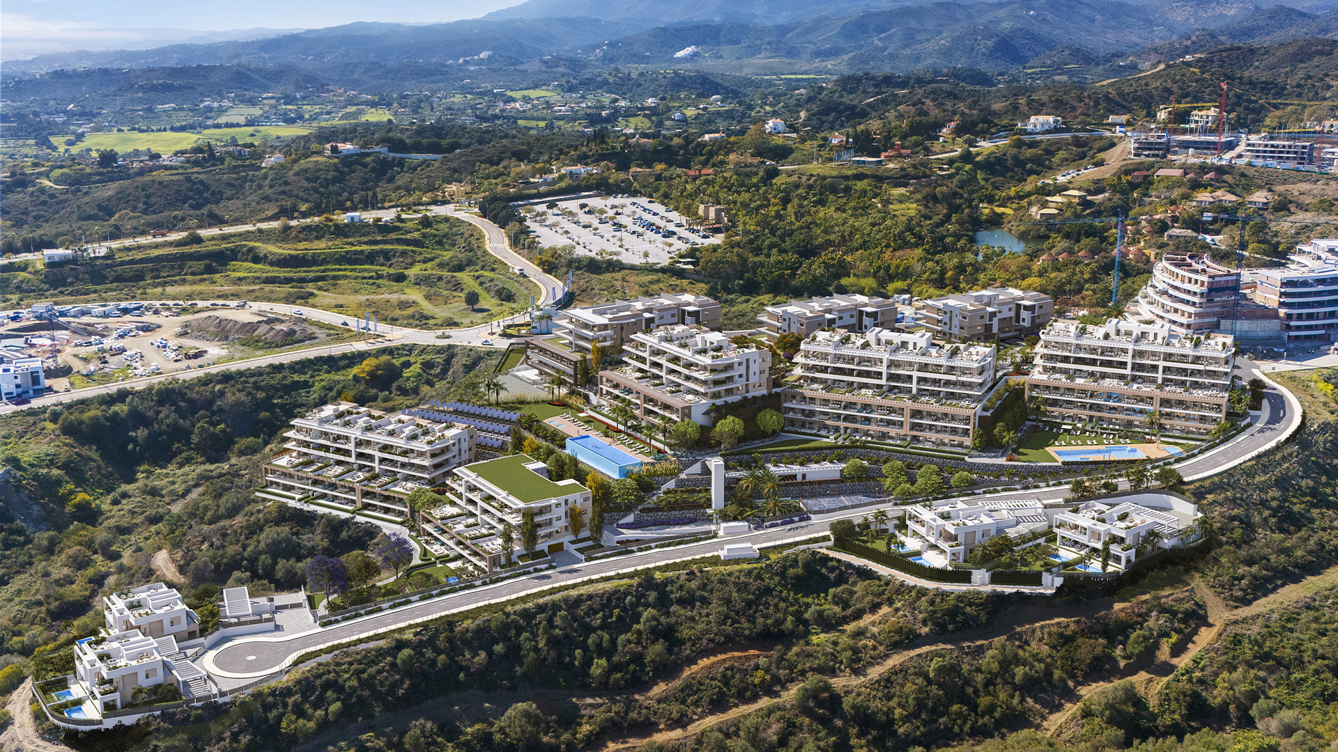 Marine Hills is a new residential complex in Estepona, located in a beautiful natural setting with spectacular views of the Mediterranean Sea. The complex is close to a wide range of amenities, leisure activities, golf courses, and the Selwo Adventure Park. For golf enthusiasts, La Resina Golf & Country Club and seven other golf courses are within a 5 km radius, including Atalaya, El Paraรญso, El Campanario, Marbella Club, Flamingos, Villa Padierna, and Tramores. Castor, Arroyo de las Caรฑas, and Guadalmina beaches are less than 2 km away and accessible via the seafront promenade. The complex is also close to the prestigious Atlas American School of Mรกlaga, offering education from preschool to secondary school. Marine Hills is just a few minutes from the sea, Estepona, and Cancelada, 28 minutes from Marbella, and 45 minutes from Mรกlaga airport.