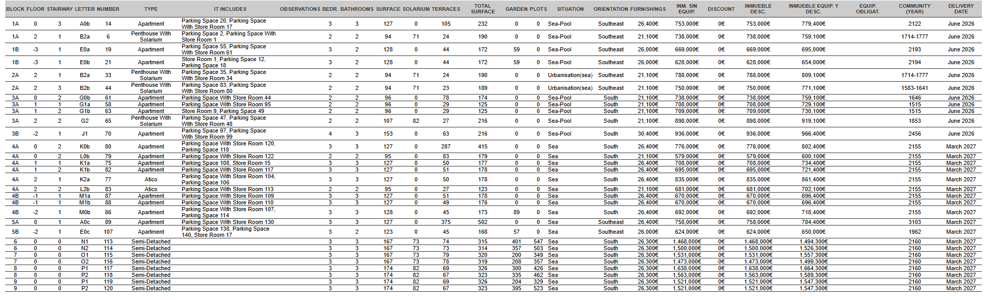 The prices listed are excluding 10% IVA (VAT). You should also take into account the stamp duty (1,2 to 1,5%) that is charged on a new property. Also keep in mind the costs of a lawyer, notary and the transfer of gas, electricity and water. And, if necessary, arranging NIE numbers and opening a bank account. For convenience, you can calculate that the cost on top of the purchase price is around 14%.