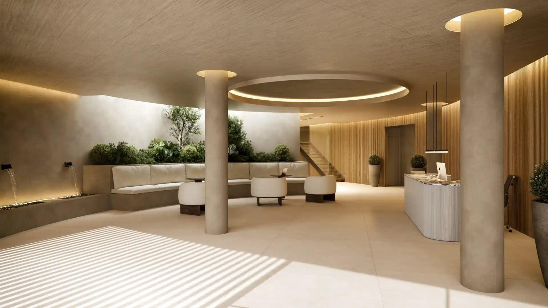 The communal areas are designed for comfort and enjoyment: gastroteca, sports bar, coworking space, infinity pool, indoor pool, sauna, yoga area, gym, putting green, green areas, lobby, and lockers. A panoramic elevator connects Óleo directly to the beach and the area’s best restaurants, providing convenience, comfort, and stunning views.