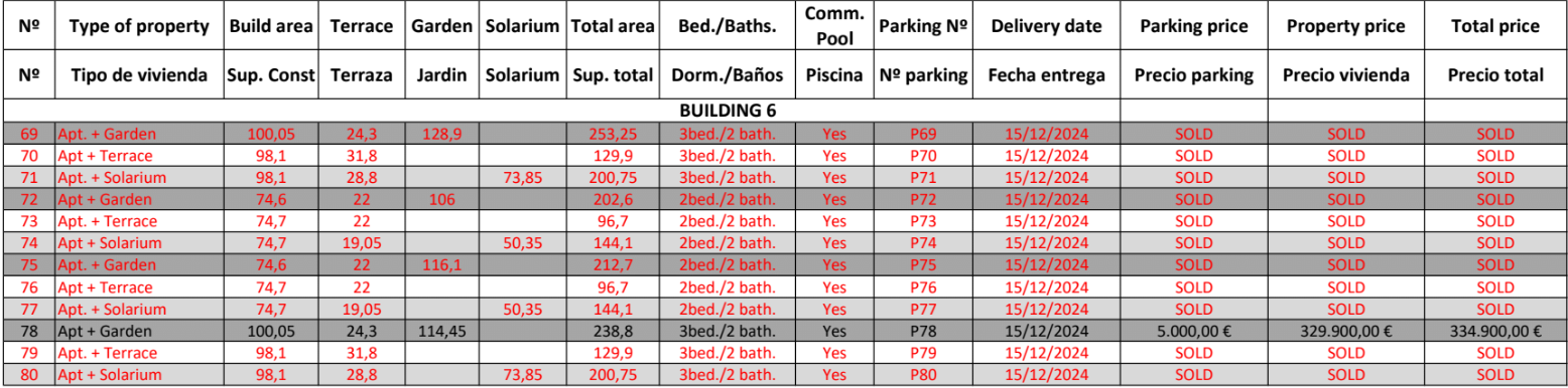 The prices listed are excluding 10% IVA (VAT). You should also take into account the stamp duty (1,2 to 1,5%) that is charged on a new property. Also keep in mind the costs of a lawyer, notary and the transfer of gas, electricity and water. And, if necessary, arranging NIE numbers and opening a bank account. For convenience, you can calculate that the cost on top of the purchase price is around 14%.