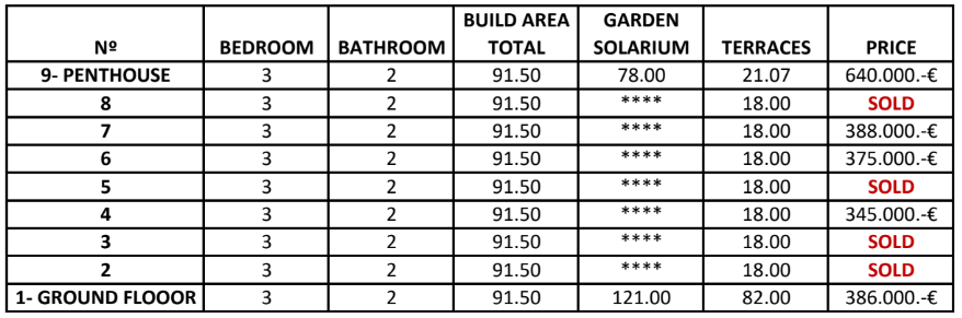The prices listed are excluding 10% IVA (VAT). You should also take into account the stamp duty (1,2 to 1,5%) that is charged on a new property. Also keep in mind the costs of a lawyer, notary and the transfer of gas, electricity and water. And, if necessary, arranging NIE numbers and opening a bank account. For convenience, you can calculate that the cost on top of the purchase price is around 14%.