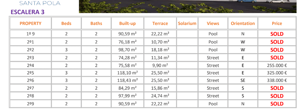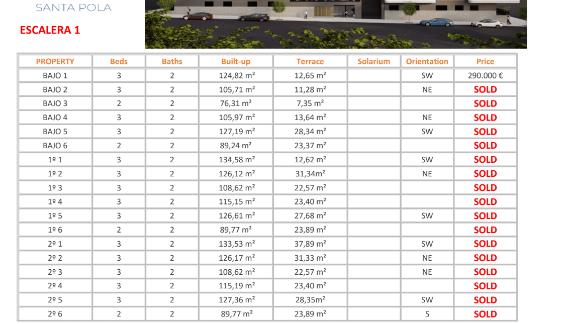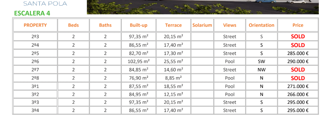 The prices listed are excluding 10% IVA (VAT). You should also take into account the stamp duty (1,2 to 1,5%) that is charged on a new property. Also keep in mind the costs of a lawyer, notary and the transfer of gas, electricity and water. And, if necessary, arranging NIE numbers and opening a bank account. For convenience, you can calculate that the cost on top of the purchase price is around 14%.
