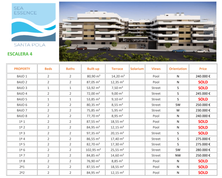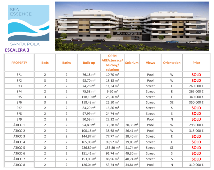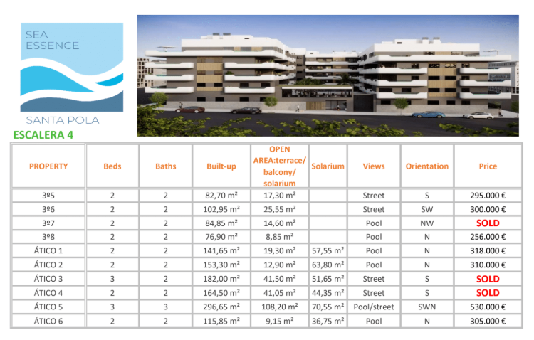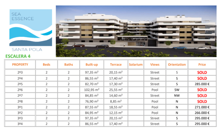 Sea Essence is a new development in Santa Pola, with all the benefits of living in the city center with shops, restaurants and bars at walking distance.
