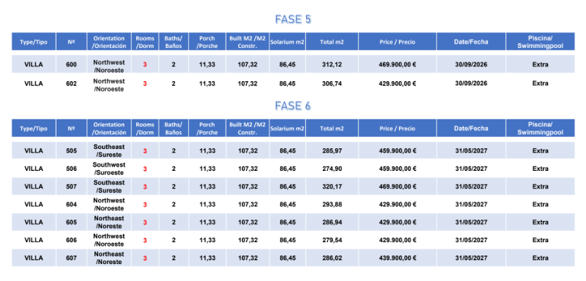 The prices listed are excluding 10% IVA (VAT). You should also take into account the stamp duty (1,2 to 1,5%) that is charged on a new property. Also keep in mind the costs of a lawyer, notary and the transfer of gas, electricity and water. And, if necessary, arranging NIE numbers and opening a bank account. For convenience, you can calculate that the cost on top of the purchase price is around 14%.