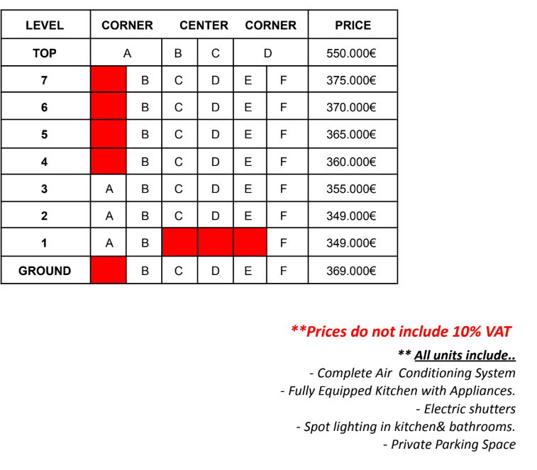 The prices listed are excluding 10% IVA (VAT). You should also take into account the stamp duty (1,2 to 1,5%) that is charged on a new property. Also keep in mind the costs of a lawyer, notary and the transfer of gas, electricity and water. And, if necessary, arranging NIE numbers and opening a bank account. For convenience, you can calculate that the cost on top of the purchase price is around 14%.