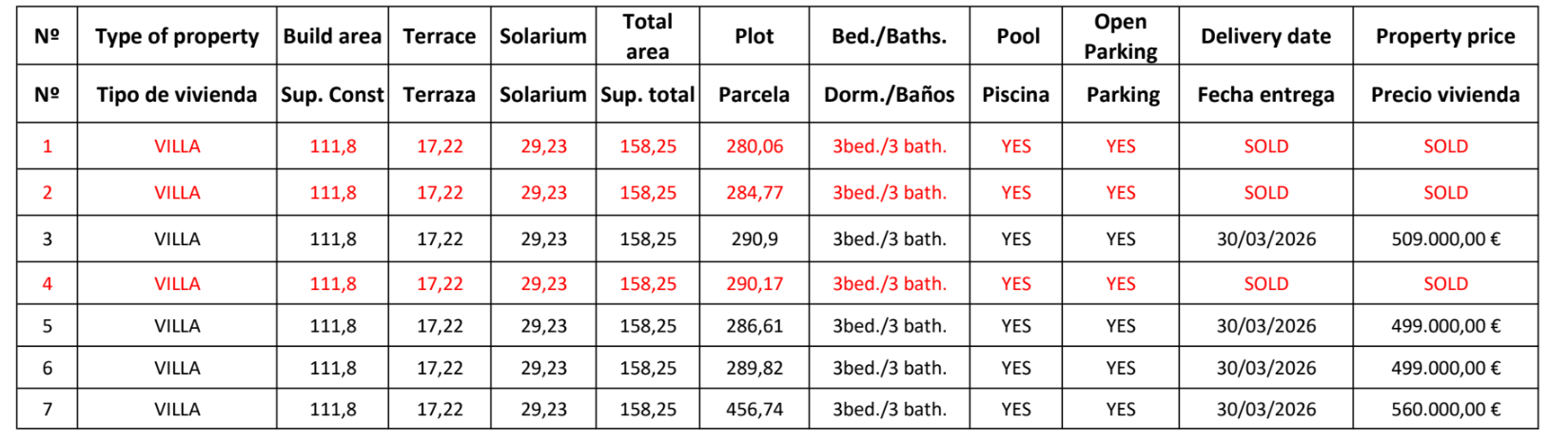 The villas feature spacious, bright living areas, with high-quality finishes and an open layout that makes the most of natural light. Each villa has 3 bedrooms and 3 bathrooms, as well as a large living room and an open kitchen, which flow seamlessly into the outdoor space. The spacious terraces and private pools offer the perfect place to relax and enjoy the Mediterranean climate. The modern architecture of the villas provides a luxurious feel.